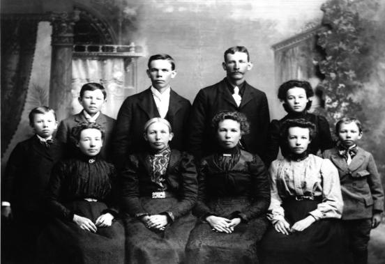 | Front Row: Esther Mary (Harris) (Johnston) Webb, Dorcas (Dann) (Harris) (Stallings) (Mallory), Laura Almina (Harris) Bailey, Sarah Agartha (Harris) Saxton; Back Row: Dellroy Mallory, Charles Clifford Stallings, Lawrence Edwin Harris, William. David. Harris, Essie Dot (Stallings) Fewkes, Elmer Clinton Mallory. Thanks to Charles_Wendy originally shared this to Charles Winston Family Tree on ancestory.com |